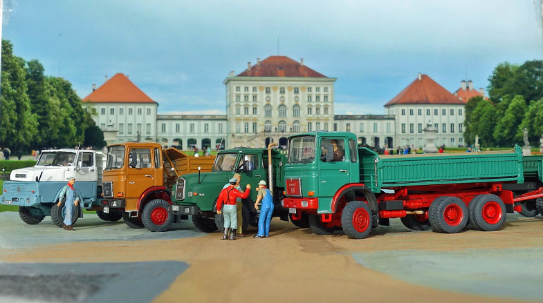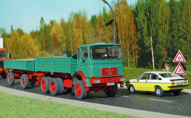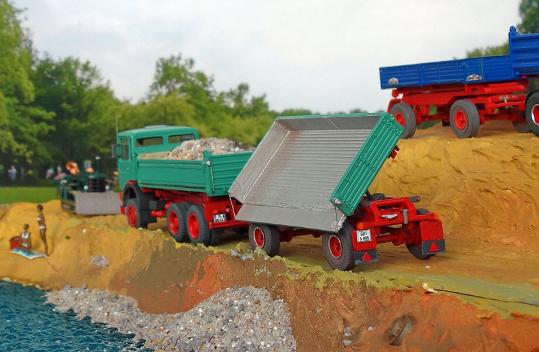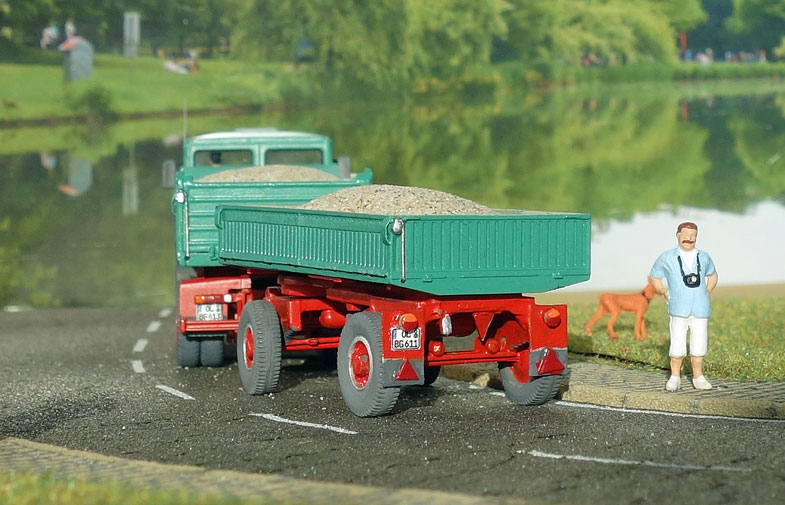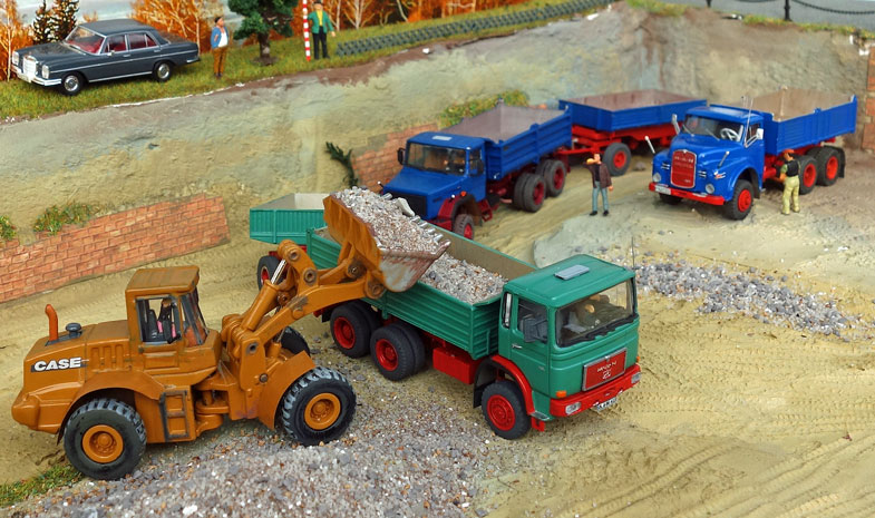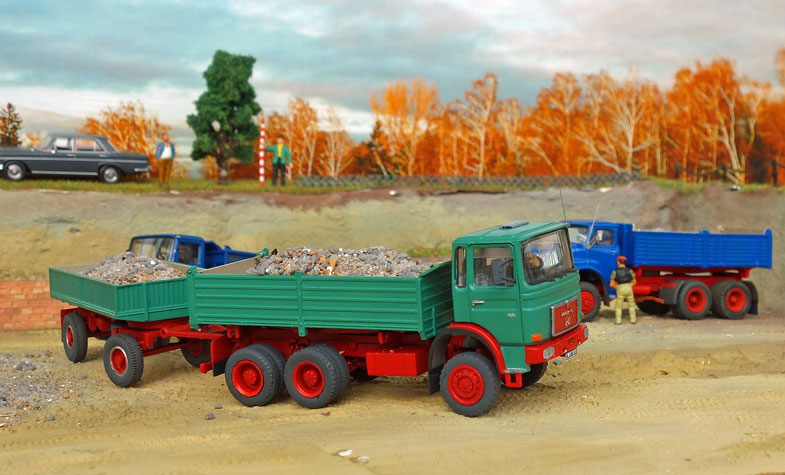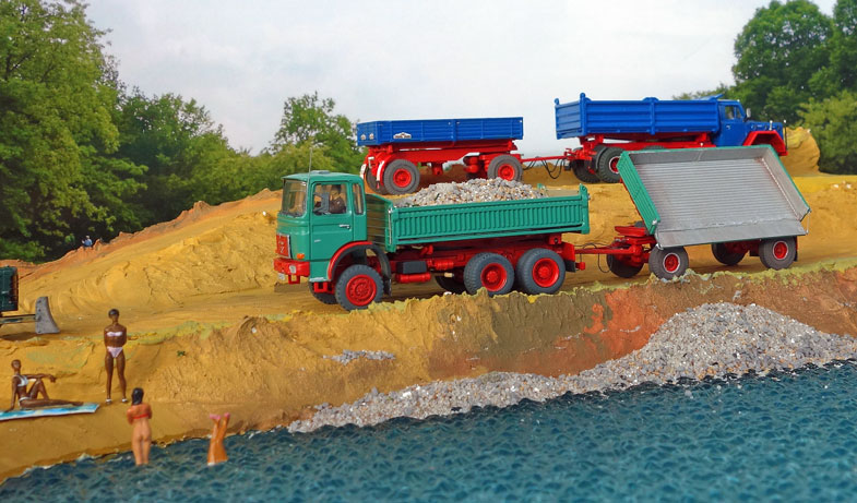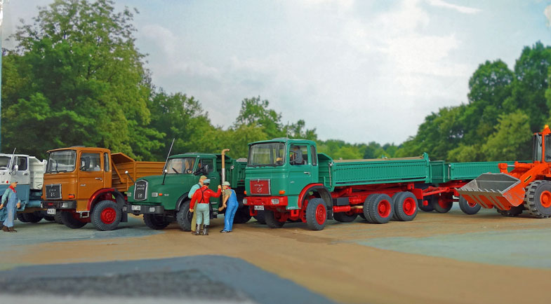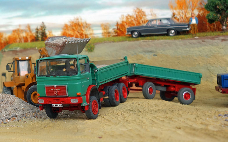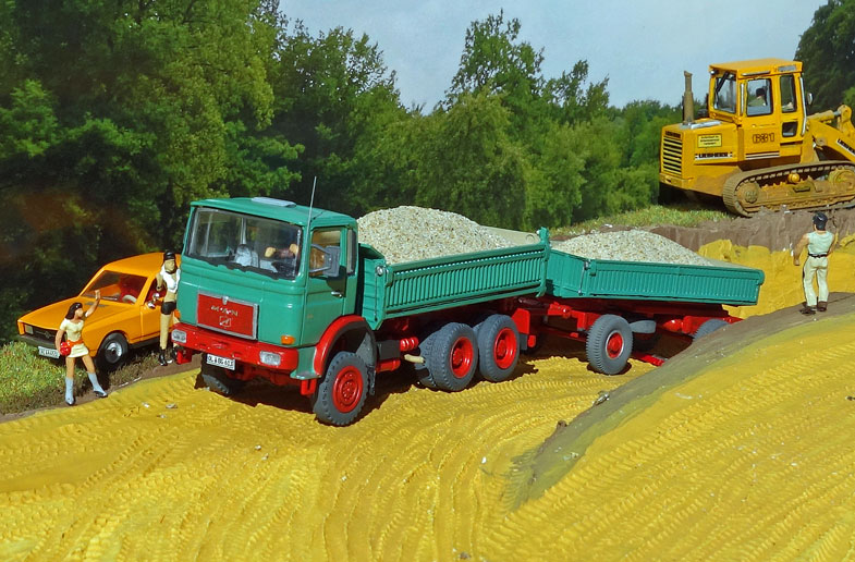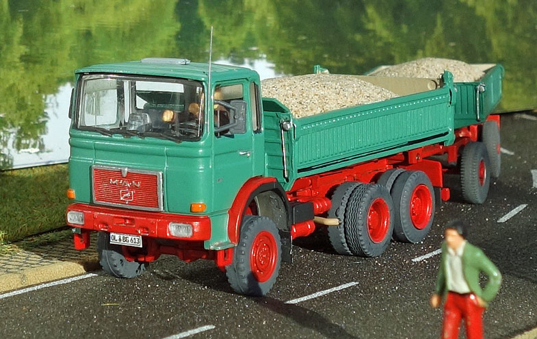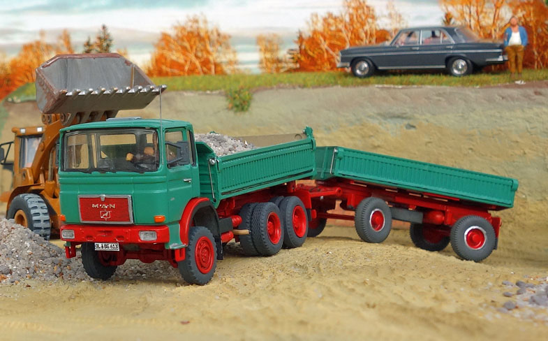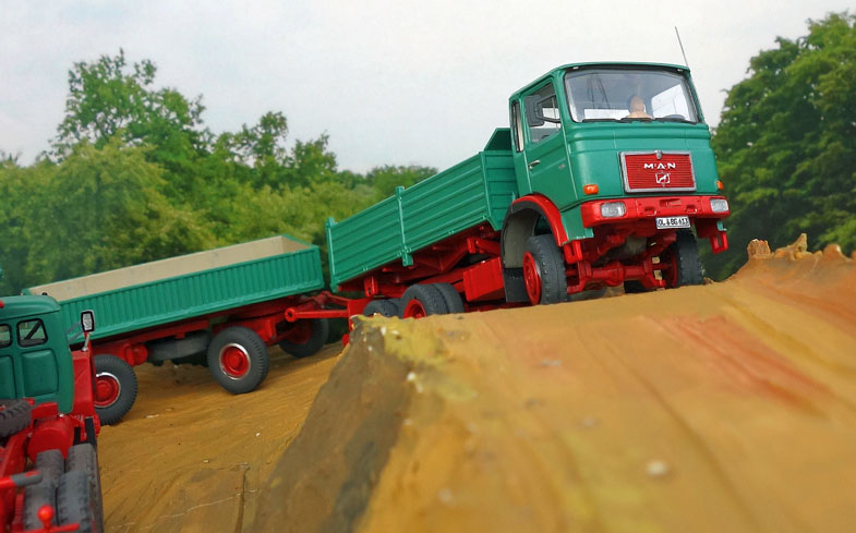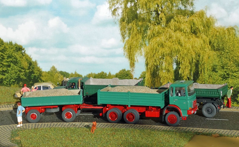 bekommt Heinz Hirsch, (der mit der roten Hose), 1979 den MAN 26.321 DFAK Kipperzug unter den