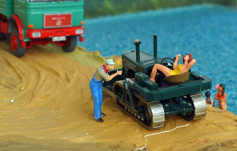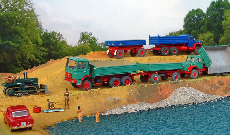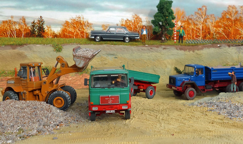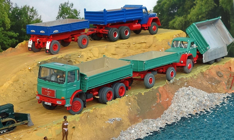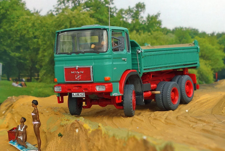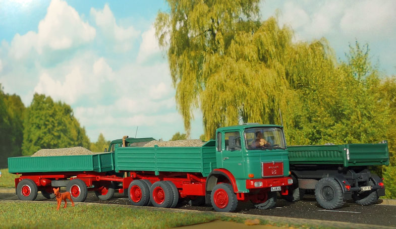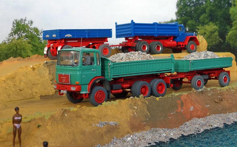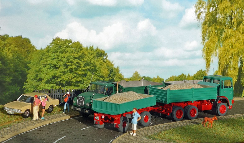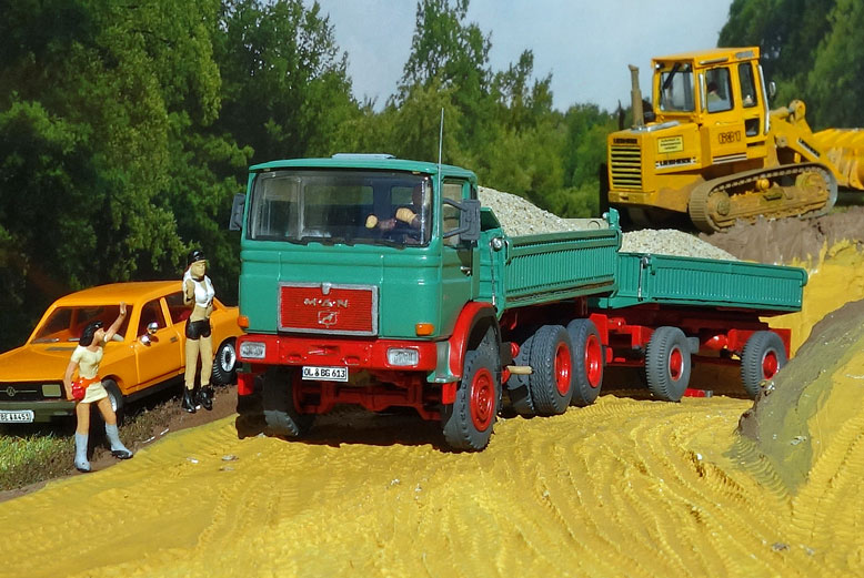 bekommt Heinz Hirsch, (der mit der roten Hose), 1979 den MAN 26.321 DFAK Kipperzug unter den